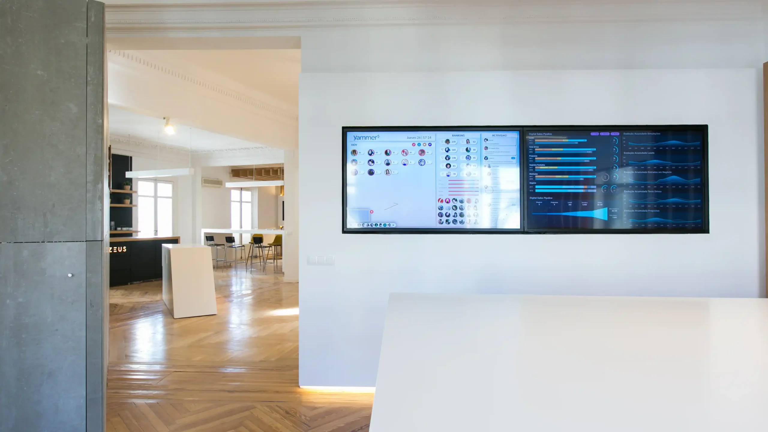 En el diseño de esta boutique tecnológica, ARCOtectura fusionó la esencia de una boutique con la eficiencia de un command center, priorizando la experiencia del cliente y la interpretación de datos. Creamos un espacio cálido, confortable y flexible, centrado en paneles de visualización para facilitar la búsqueda de información clave. La oficina Smart Visual Data, organizada en tres zonas diferenciadas, incorpora videowalls, una cafetería office y un área más privada con cocina y servicios.