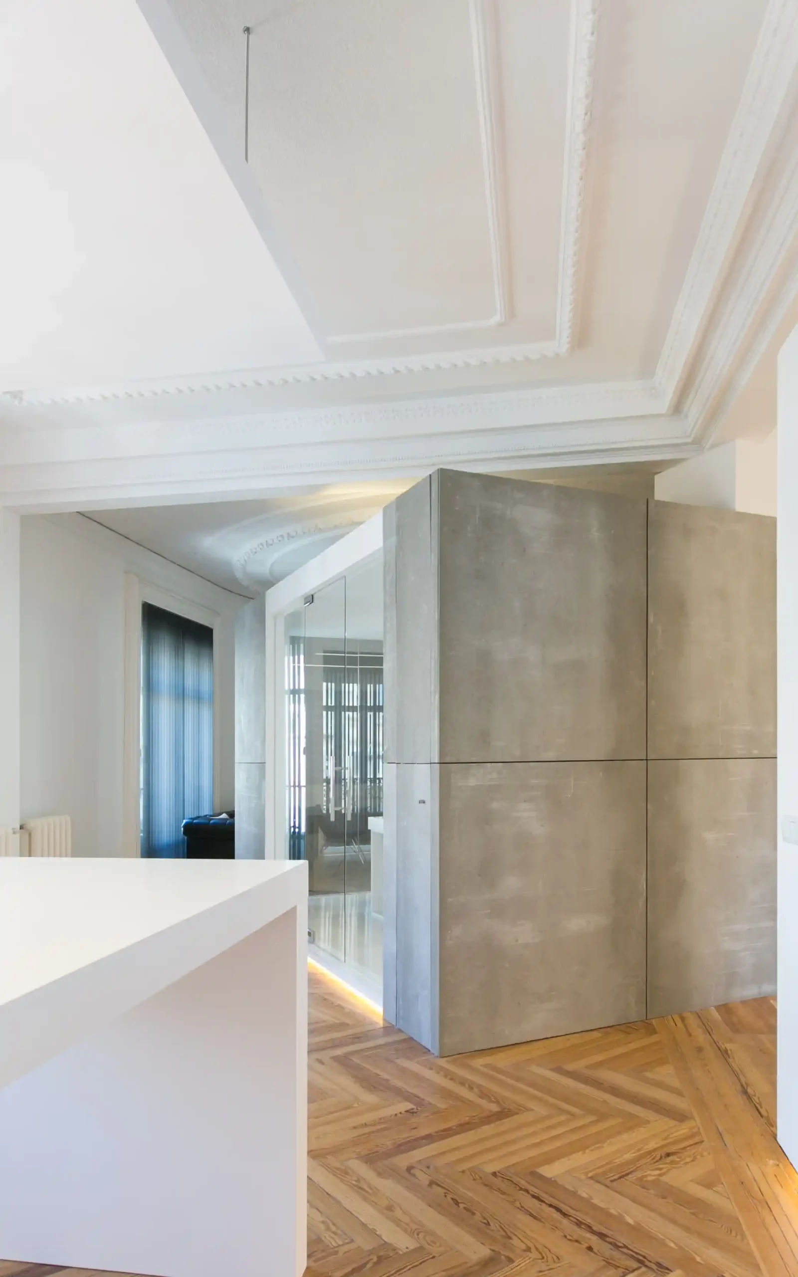 En este proyecto de redistribución total, empleamos tecnología, lenguaje arquitectónico y revestimientos contemporáneos, como domótica, melaminas de alto brillo y paneles de CBPD Viroc, integrándolos armoniosamente con elementos clásicos a preservar y restaurar. Un Mash UP que refleja la adaptación innovadora a las nuevas necesidades de una empresa data-driven.