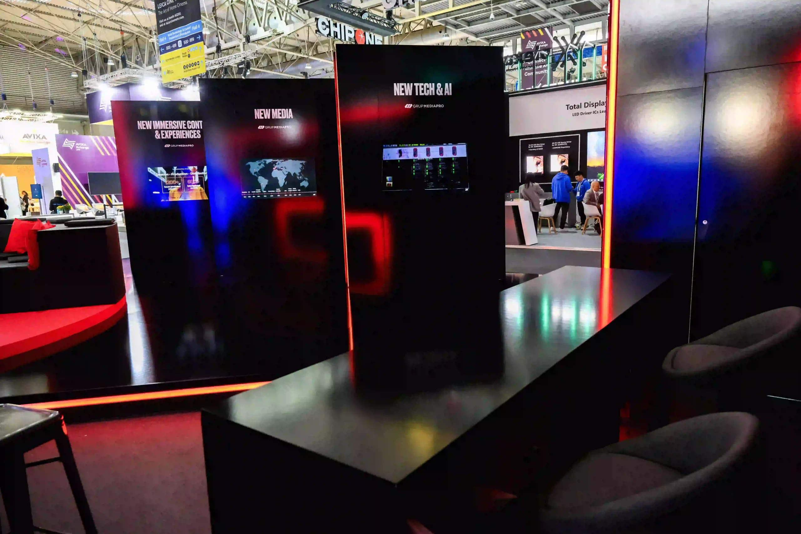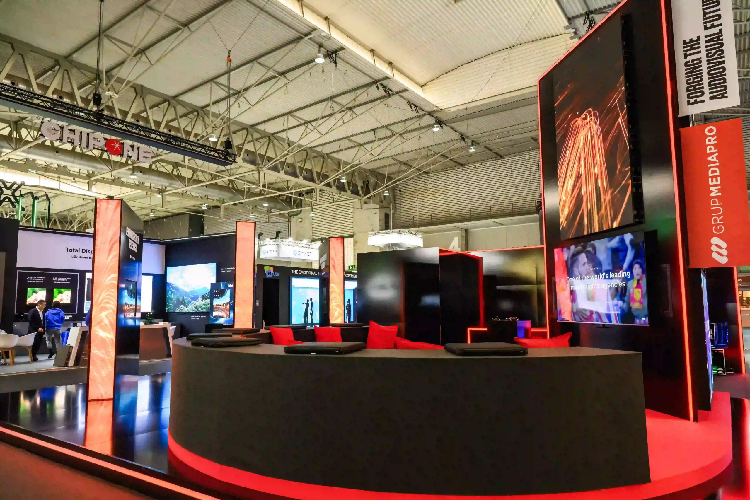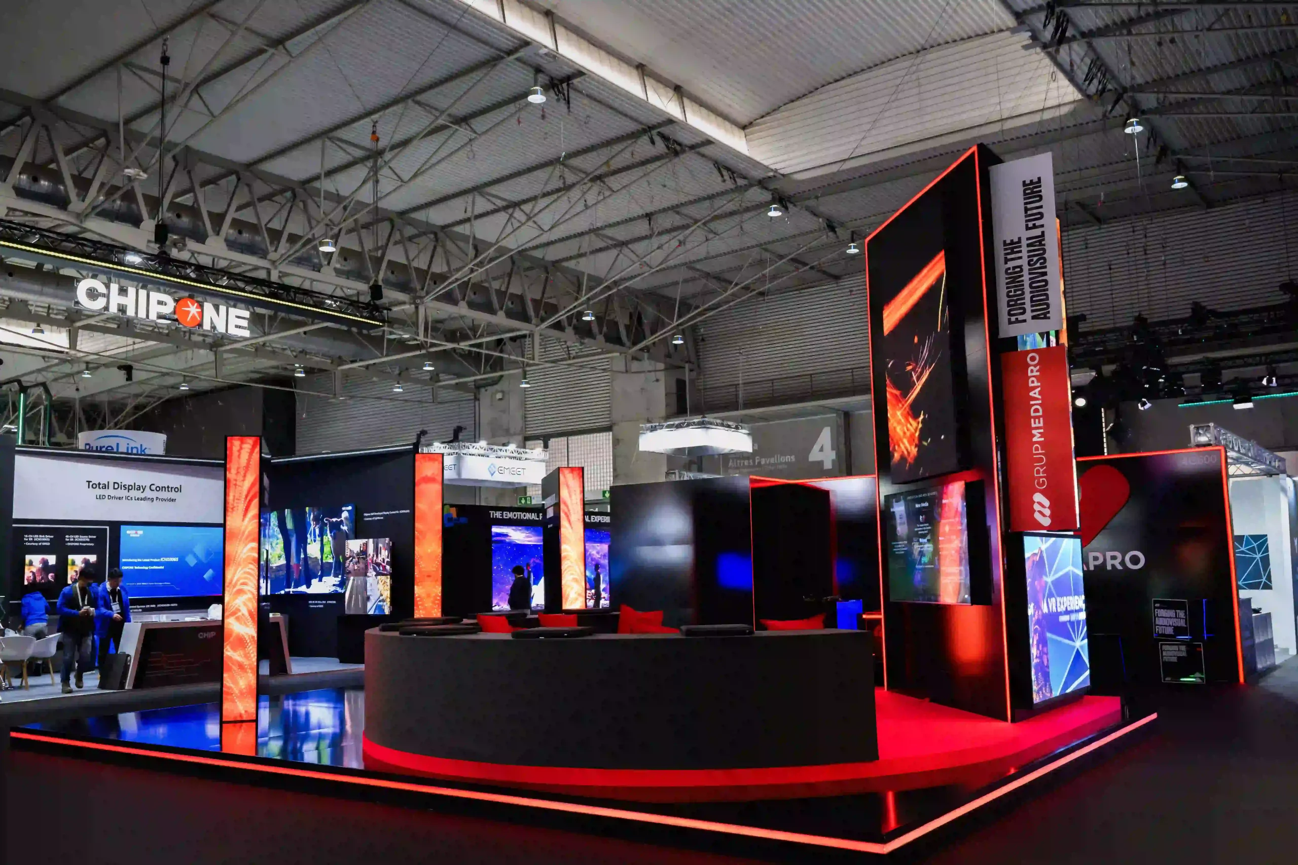 En la edición de 2024 de ISE (Integrated System Europe), hemos diseñado un stand para Mediapro, donde el liderazgo de la marca fue reflejado en una explosión de luz y tecnología.