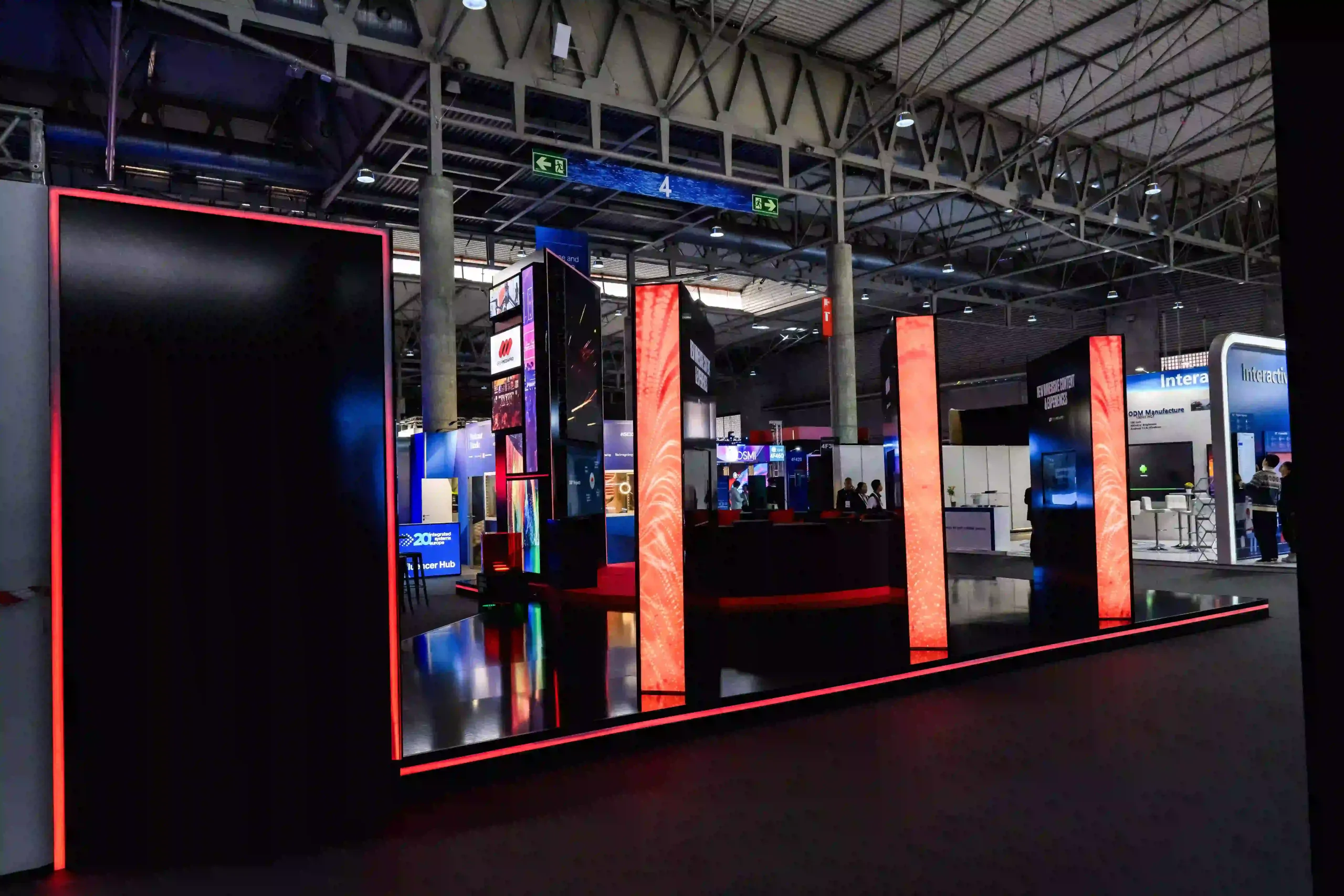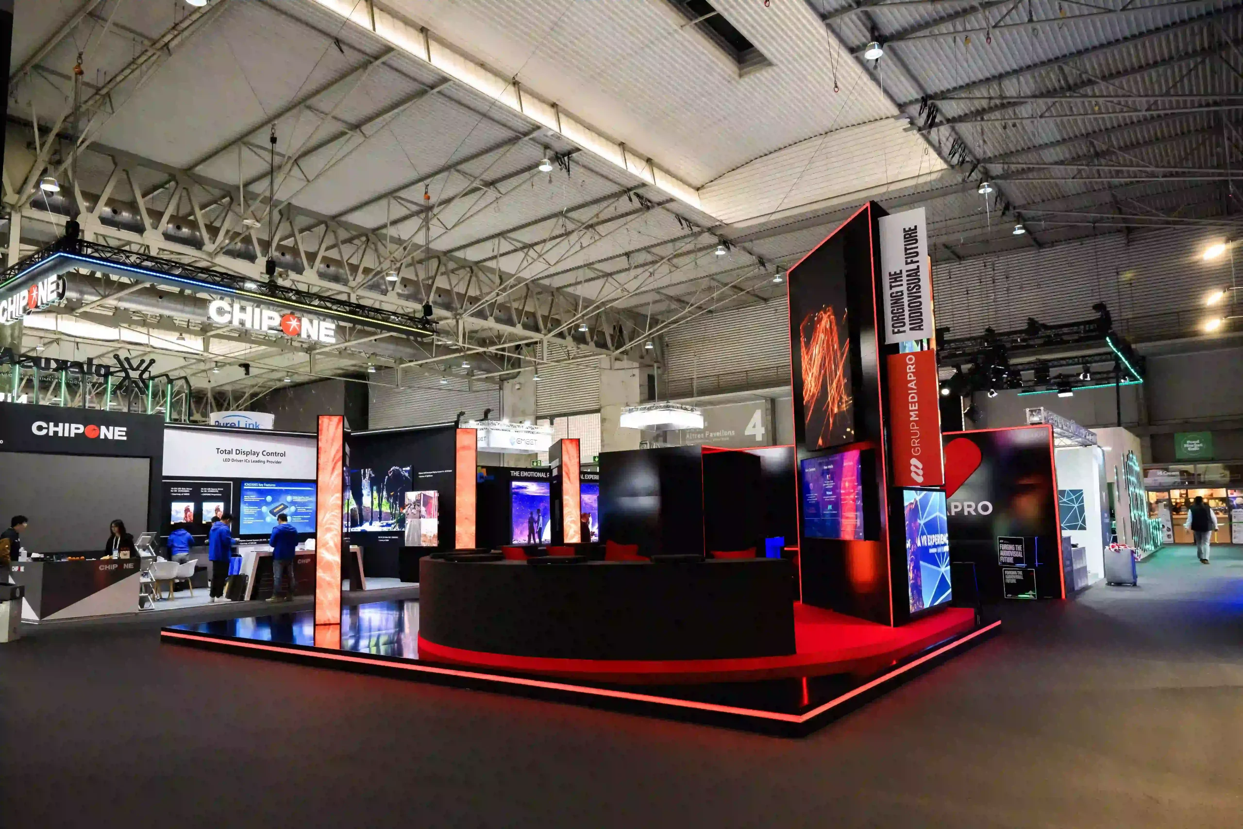 Un diseño de stand vanguardista donde la atención al detalle fue un solución exitosa, atrajo la atención de los asistentes y cumplió con sobresaliente los objetivos de una feria consolidadada en el sector audiovisual como ISE. La estructura contaba con iluminación LED, equipos audiovisuales en un tótem de pantallas, y materiales de alta calidad que reflejaban solidez y modernidad, además de ser una combinación que se transforma en una experiencia inmersiva para los visitantes.