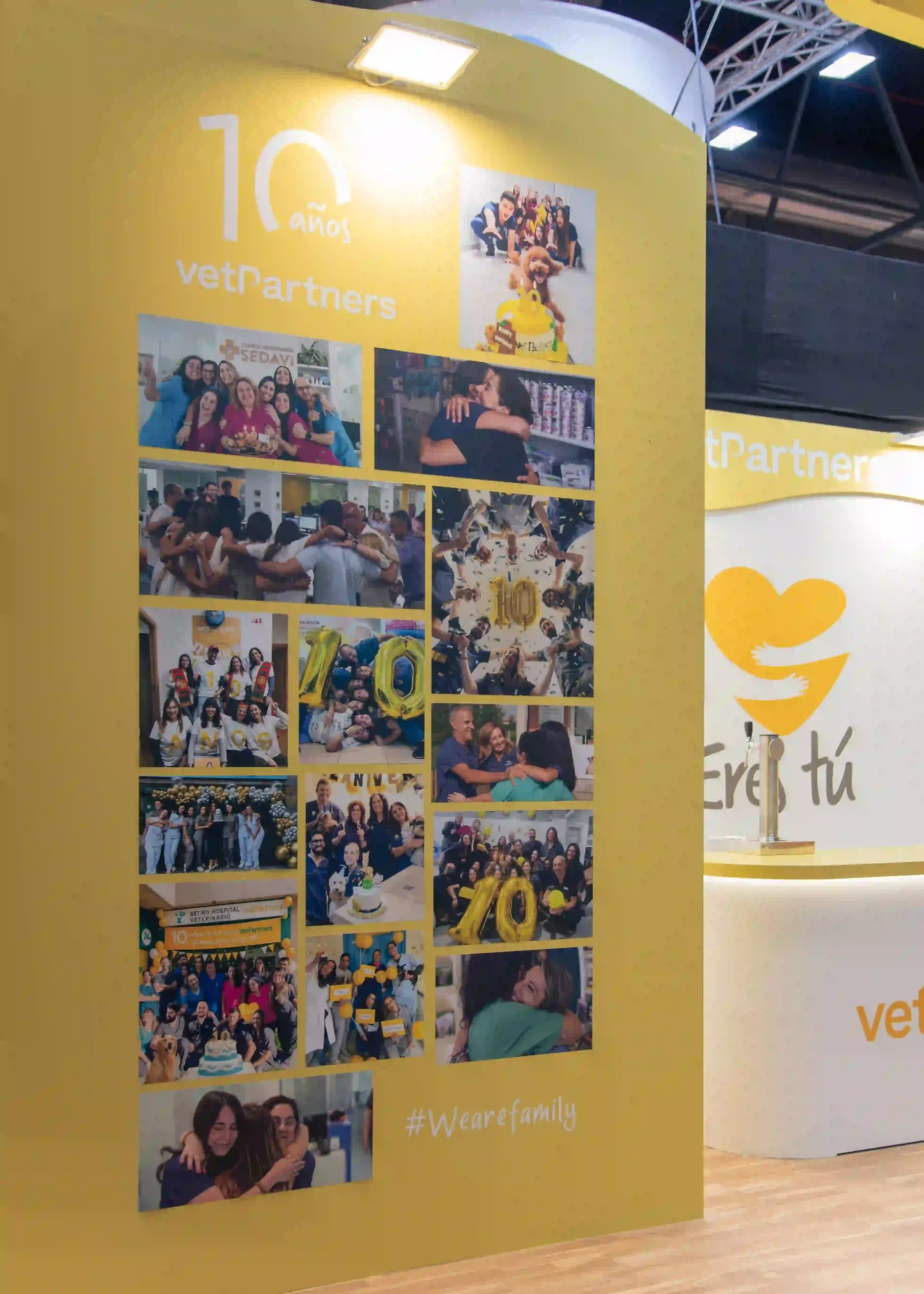 El stand personalizado también integra zonas de networking, retroiluminados, elementos de biofilia o un mural fotográfico celebrando los 10 años de comunidad.