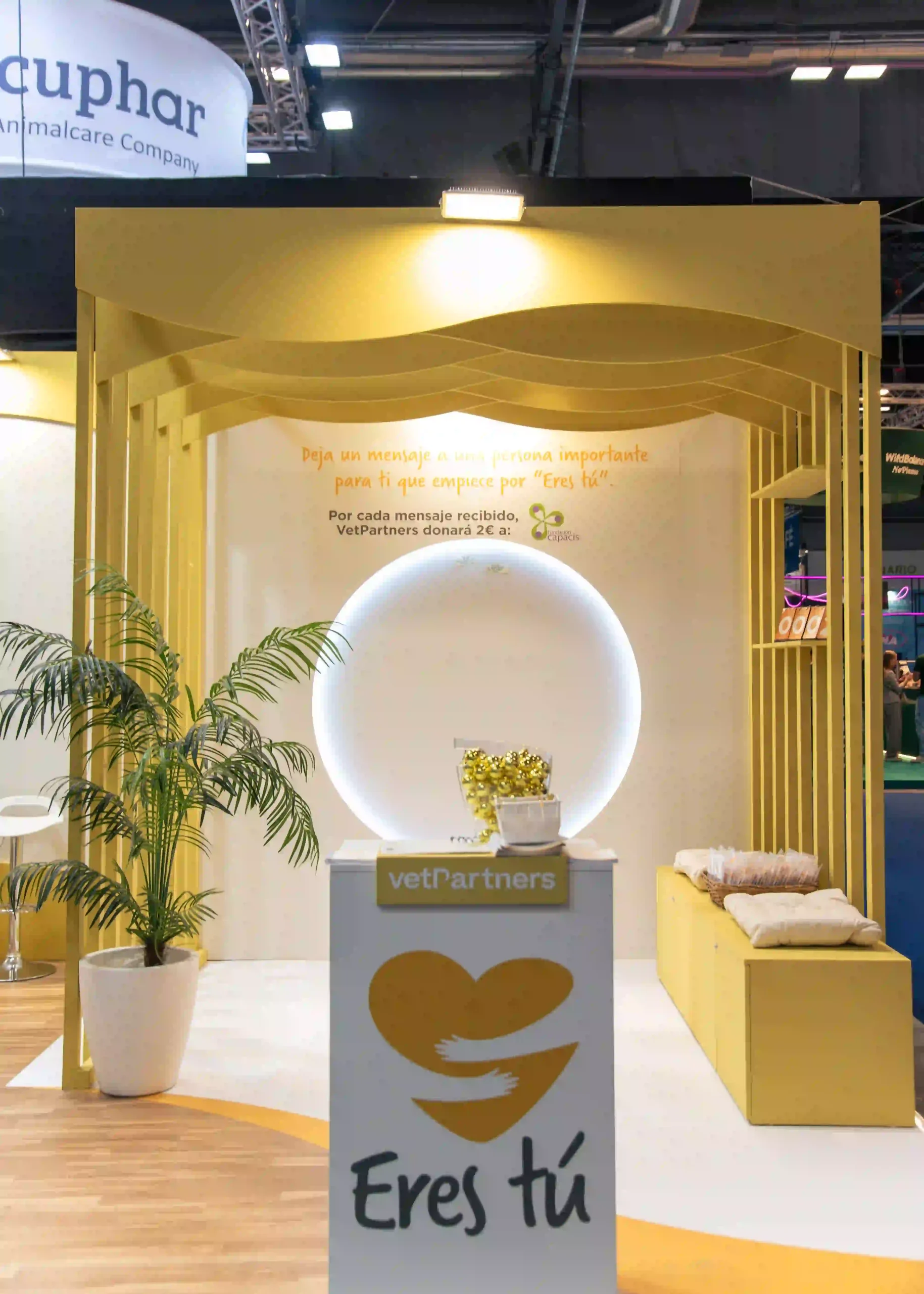 El diseño de un stand de feria significa más que simple estética. Este stand, para VetPartners, fue concebido bajo una idea: combinar la arquitectura efímera vanguardista con una propuesta que fuera visualmente impactante, moderna y que invite a entrar.