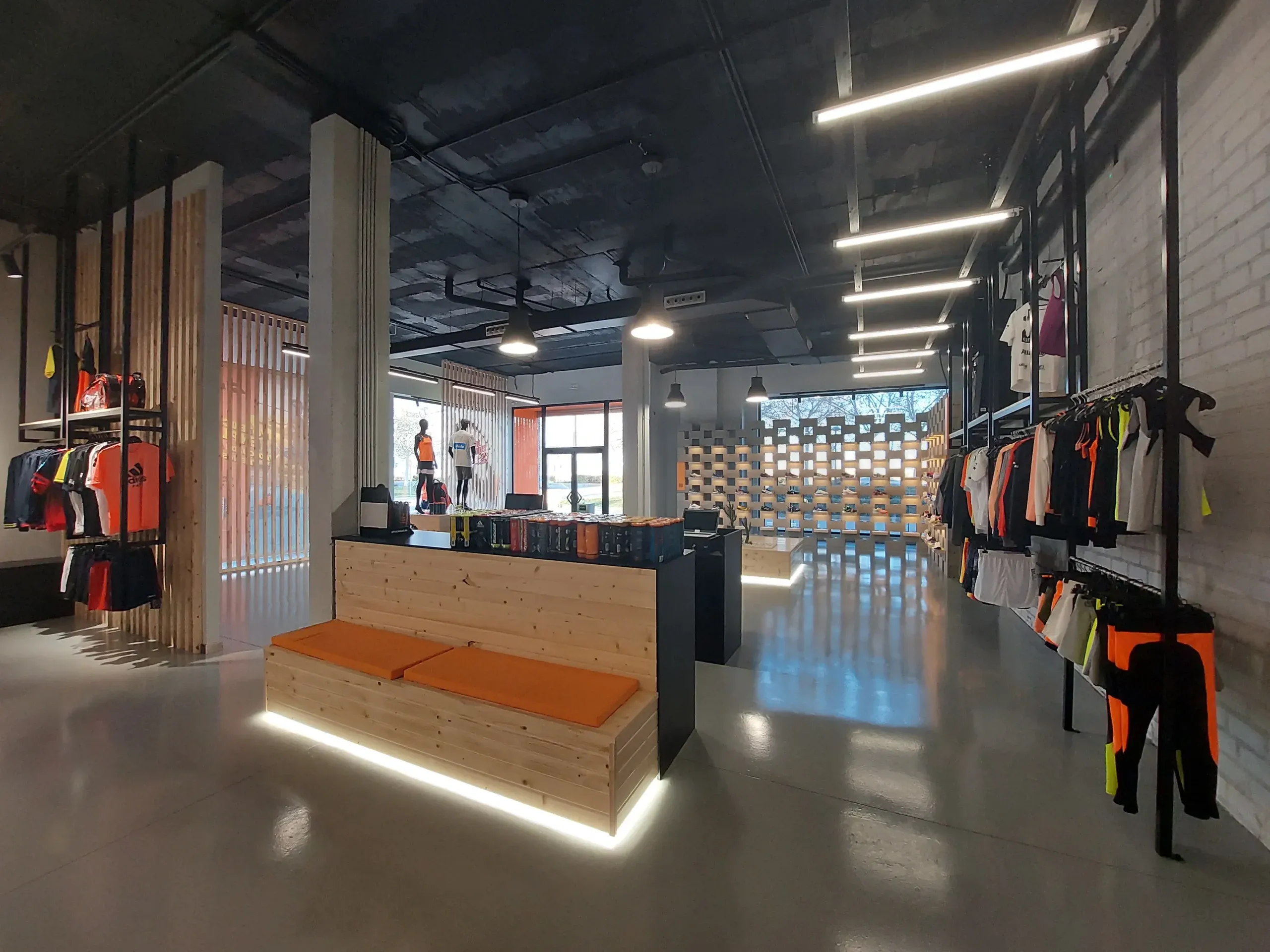 Cada rincón ha sido cuidadosamente diseñado para ofrecer una experiencia única, fusionando estética y funcionalidad, estableciendo un nuevo estándar en el diseño de espacios retail deportivos.